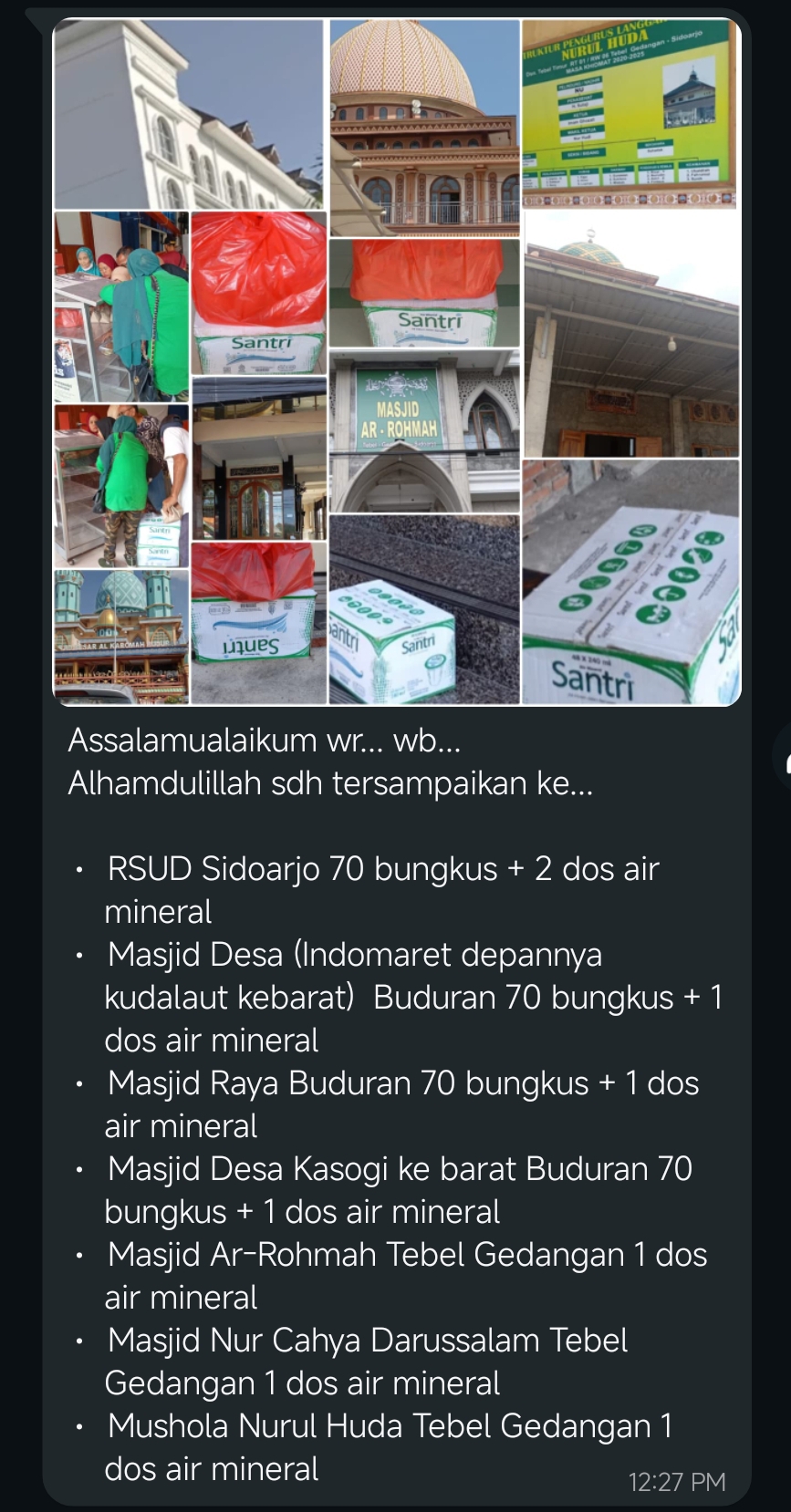 Gerakan distribusi air minum kemasan untuk menunjang syiar dakwah.