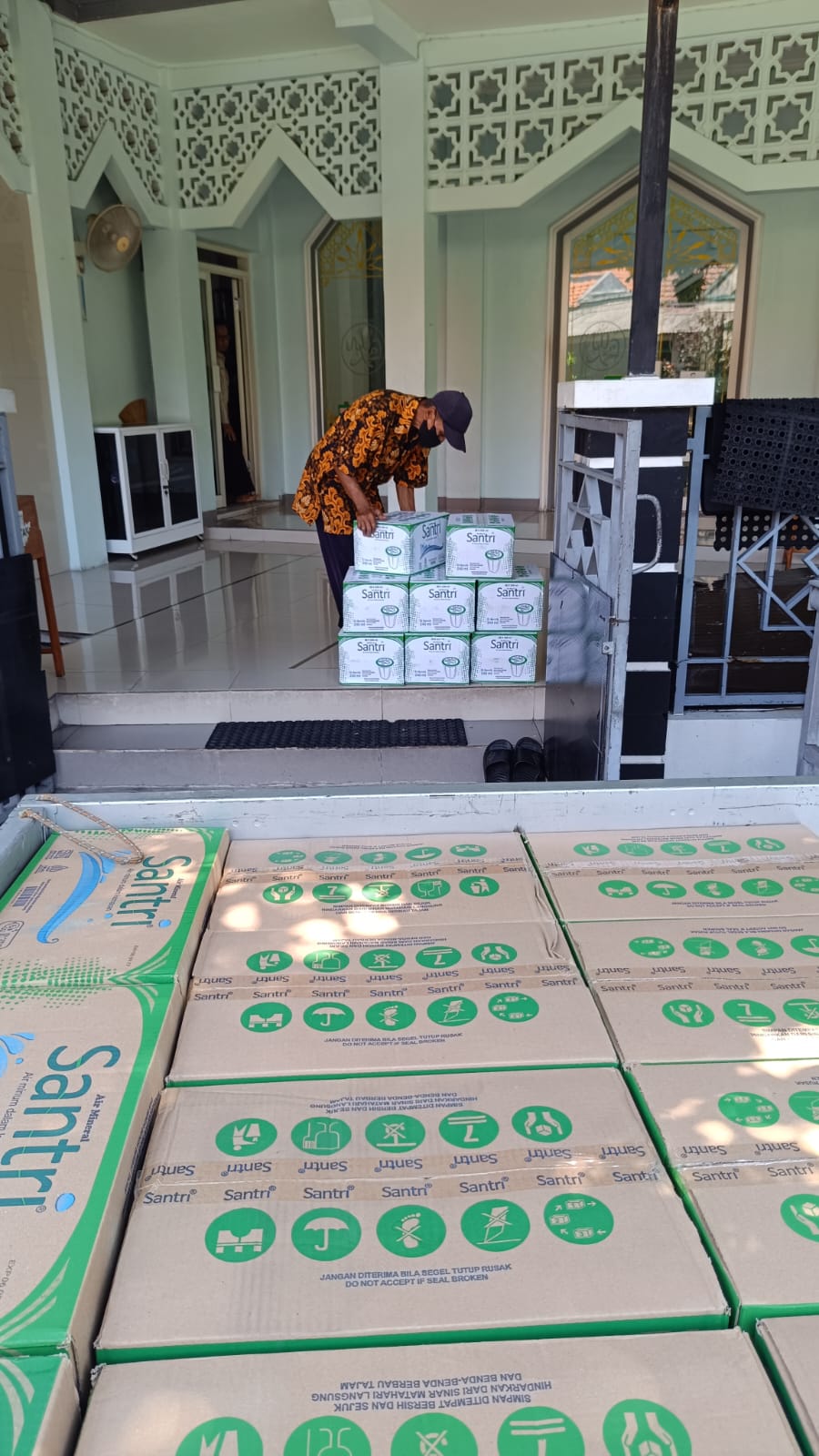 Gerakan distribusi air minum kemasan untuk menunjang syiar dakwah.